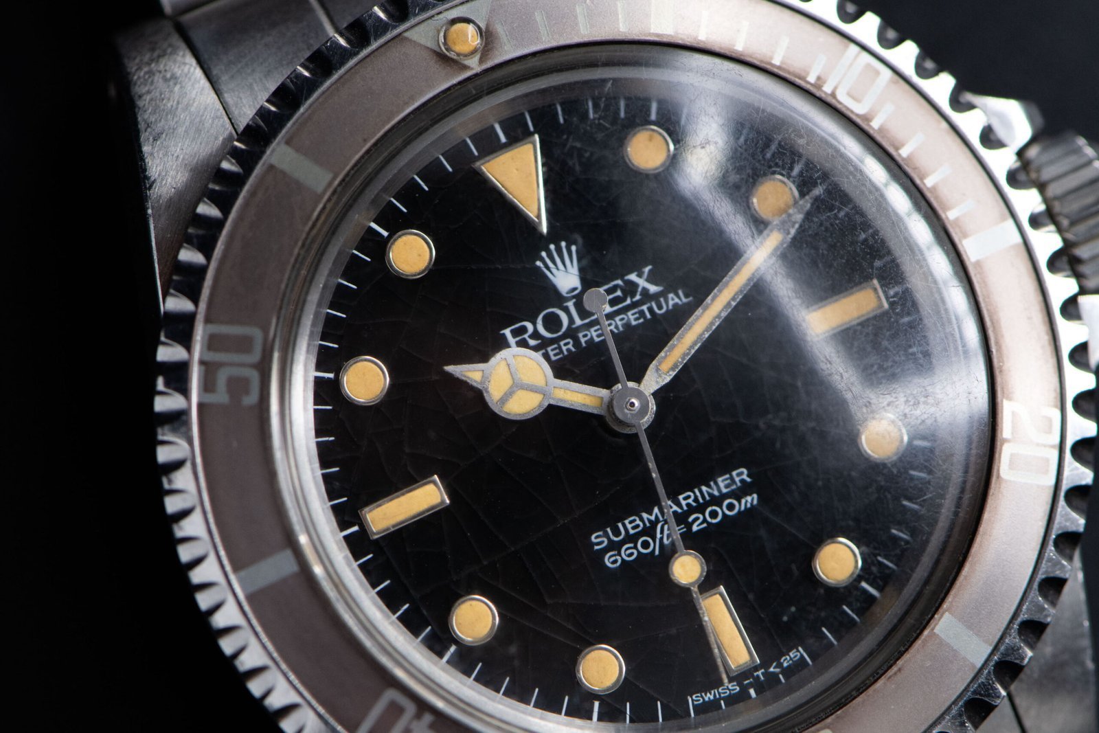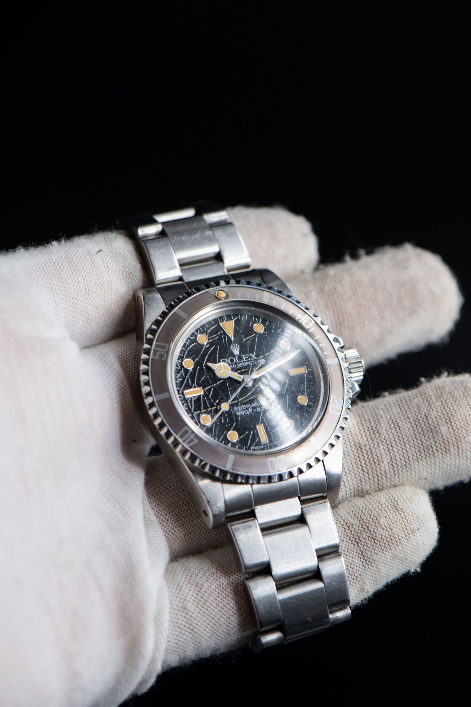 • A manufacturing defect caused the gloss black dial to crack over time, resulting in this spider web-like effect