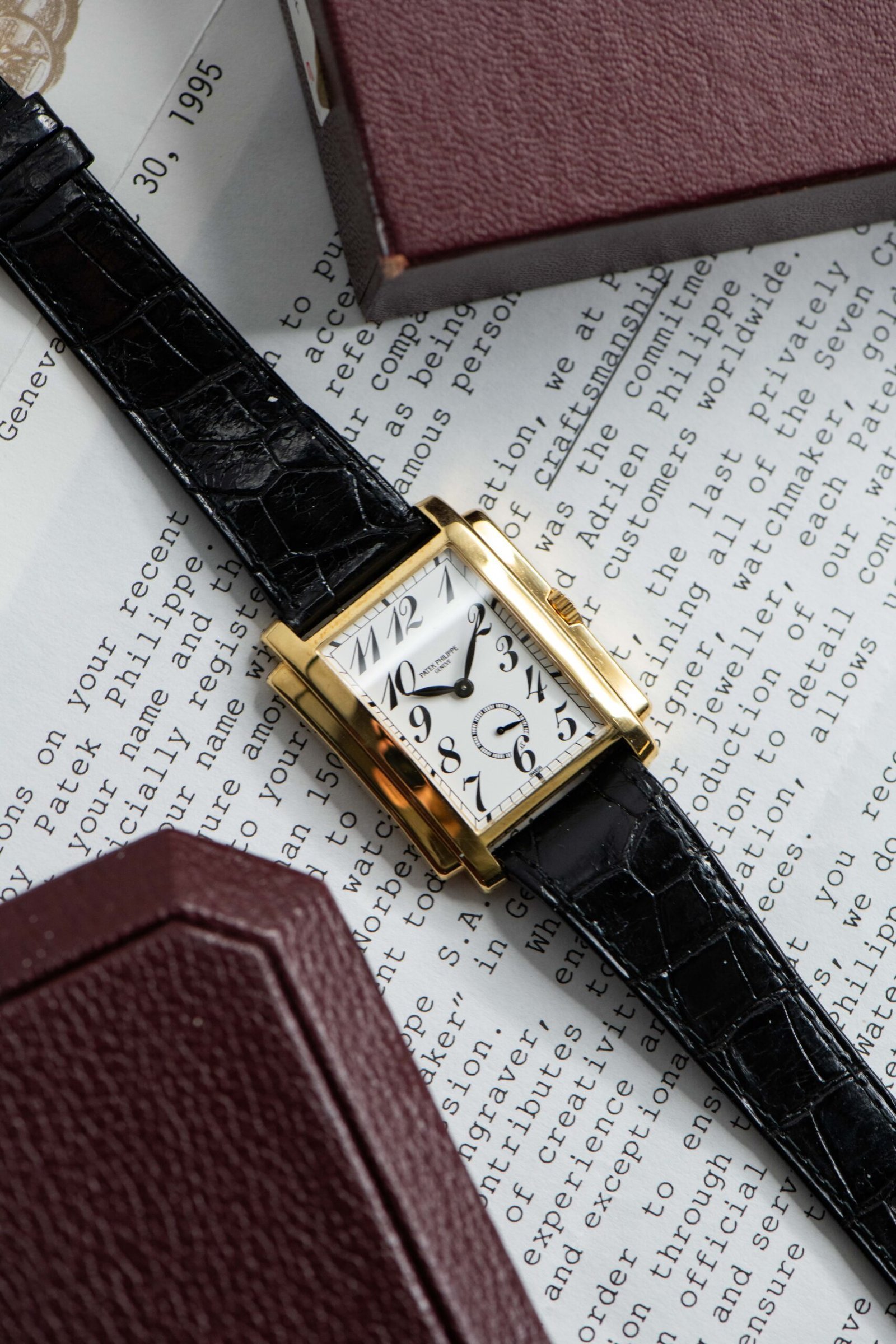 - This example from the 90s has an elegant rectangular stepped case, which invokes the design of the Gondolo made by Patek Philippe during the 1930s