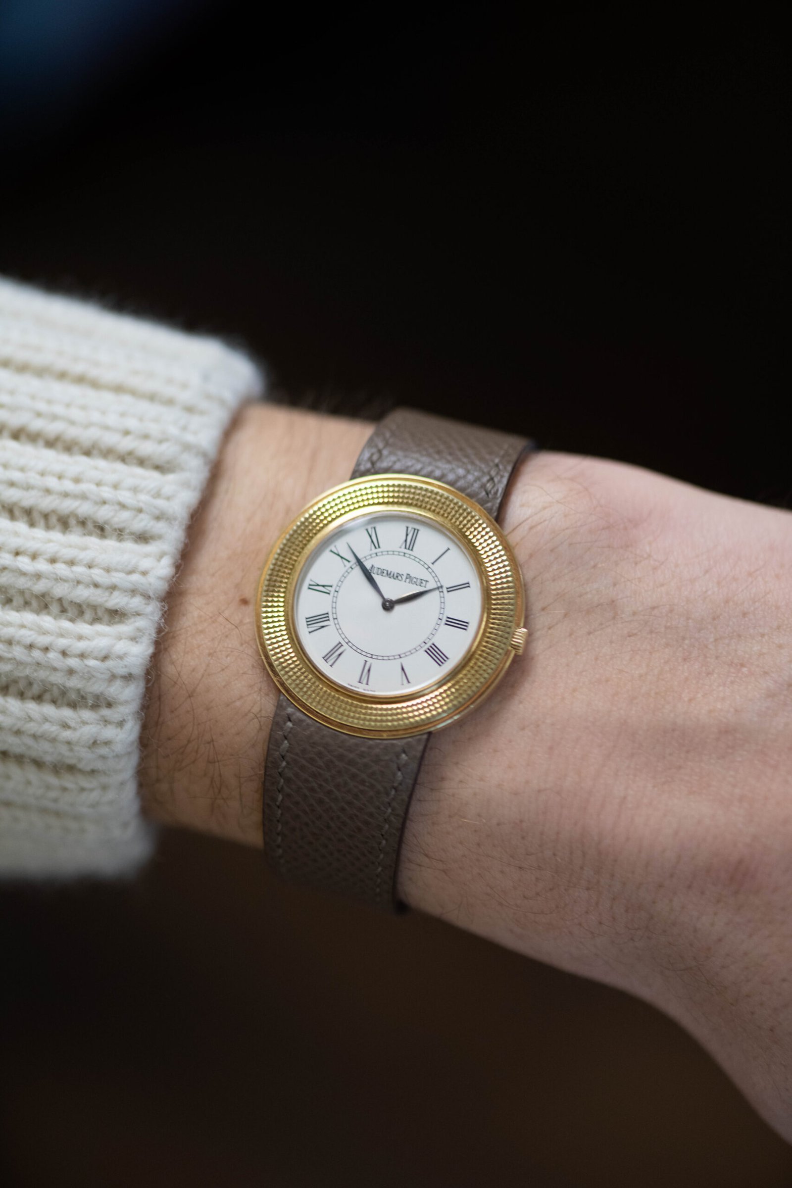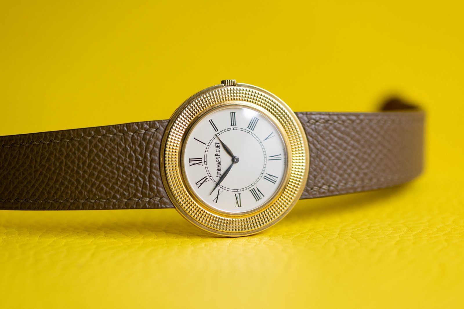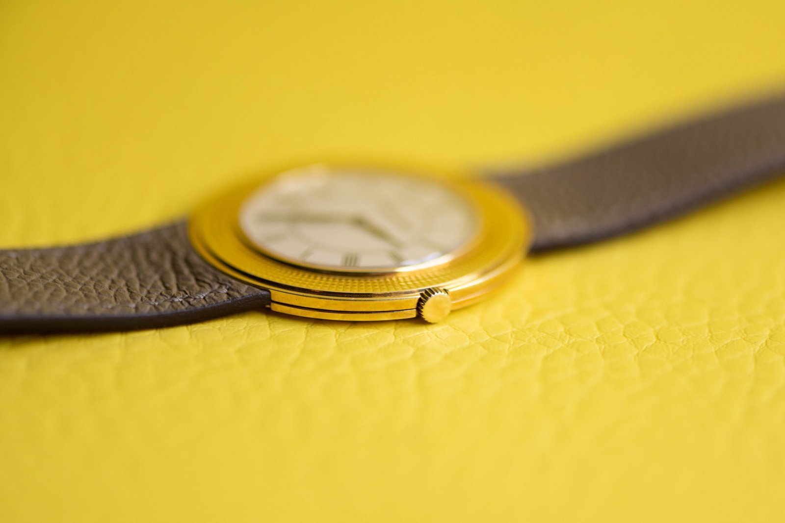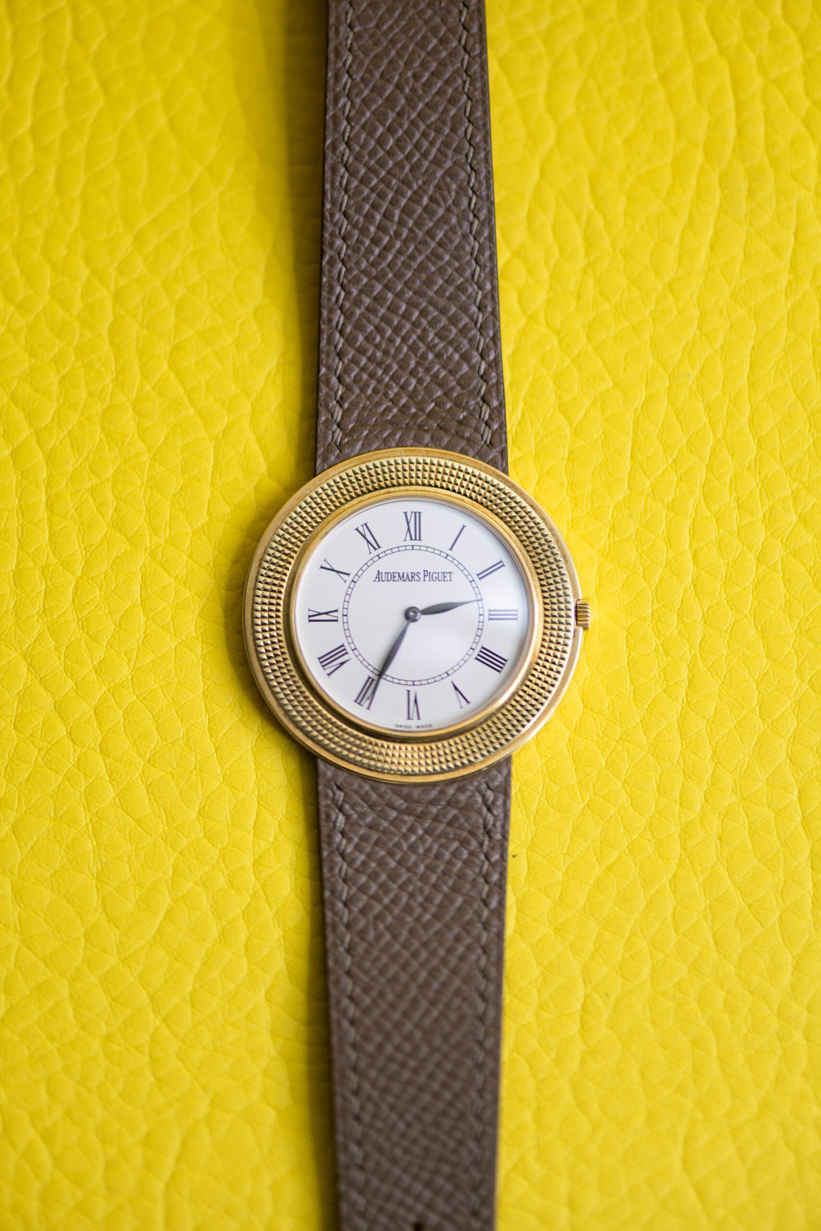 - Finished in 18k yellow gold and fitted with a taupe calf strap and original 18k gold pin buckle