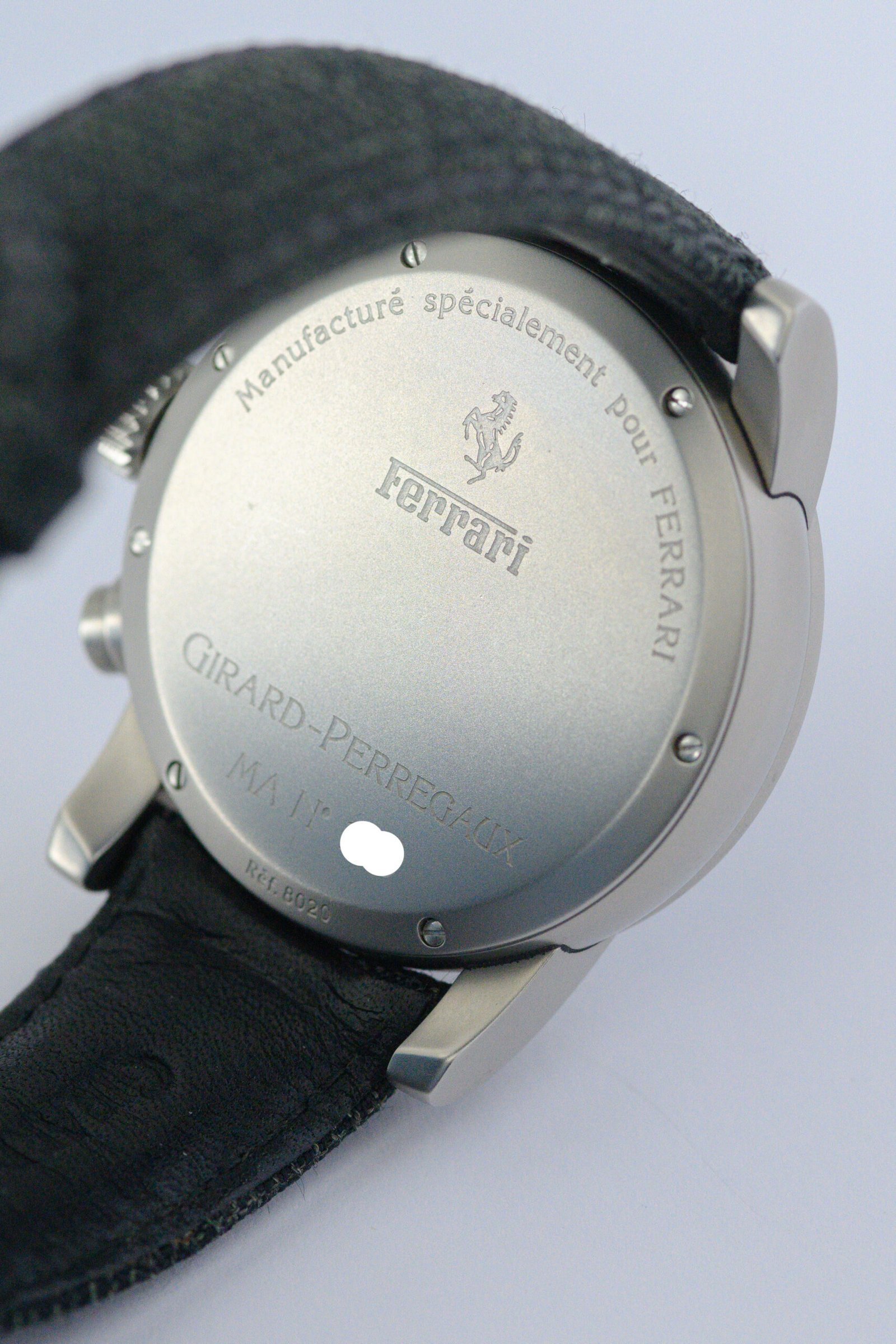 - The ref. 8020 chronograph forms the foundation of Girard Perregaux’s successful partnership with Ferrari during the late ’90s and early 2000s with the famed automaker