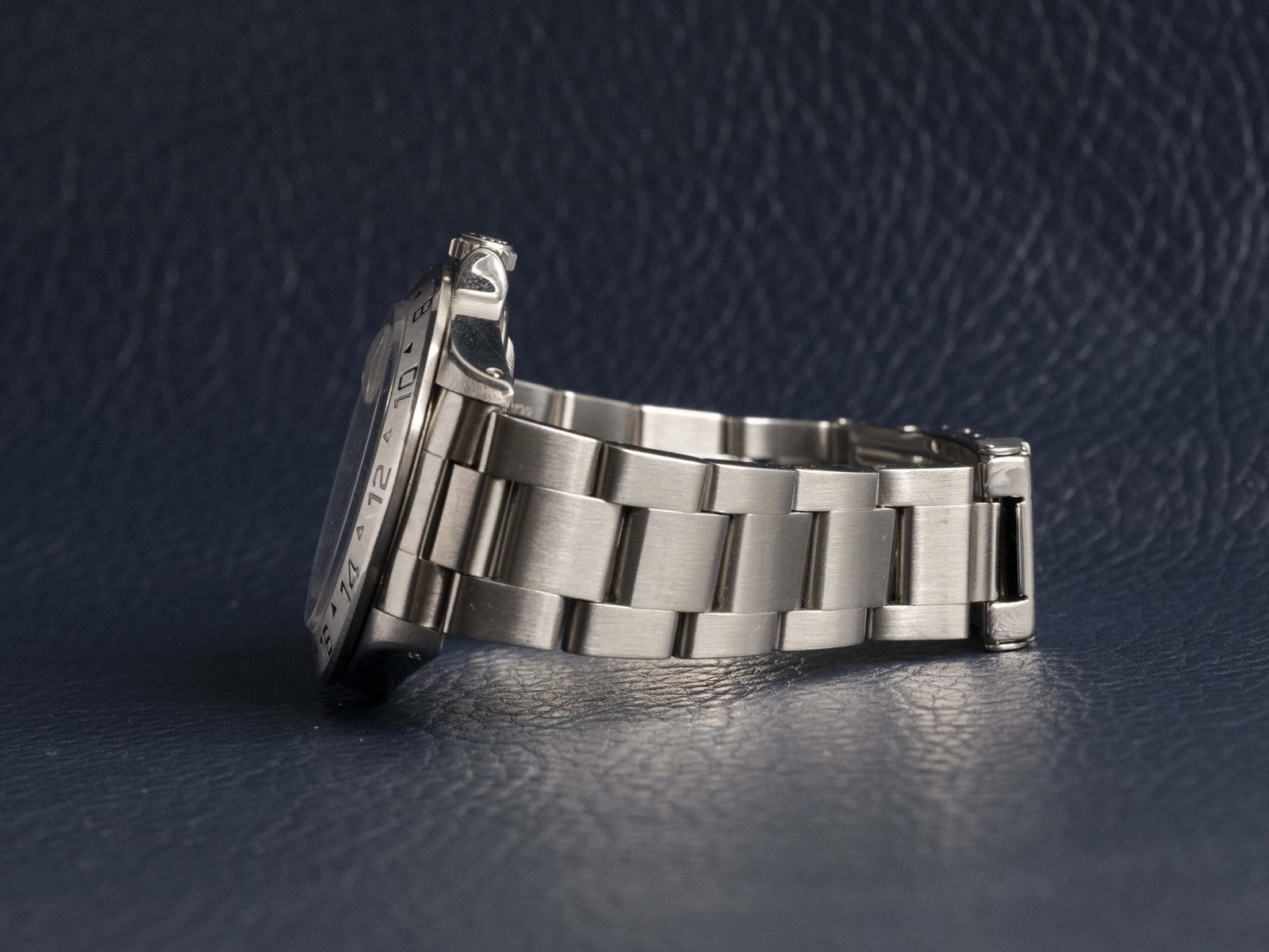 • ​A red GMT hand and brushed 24-hour bezel allow the wearer to track two time zones simultaneously