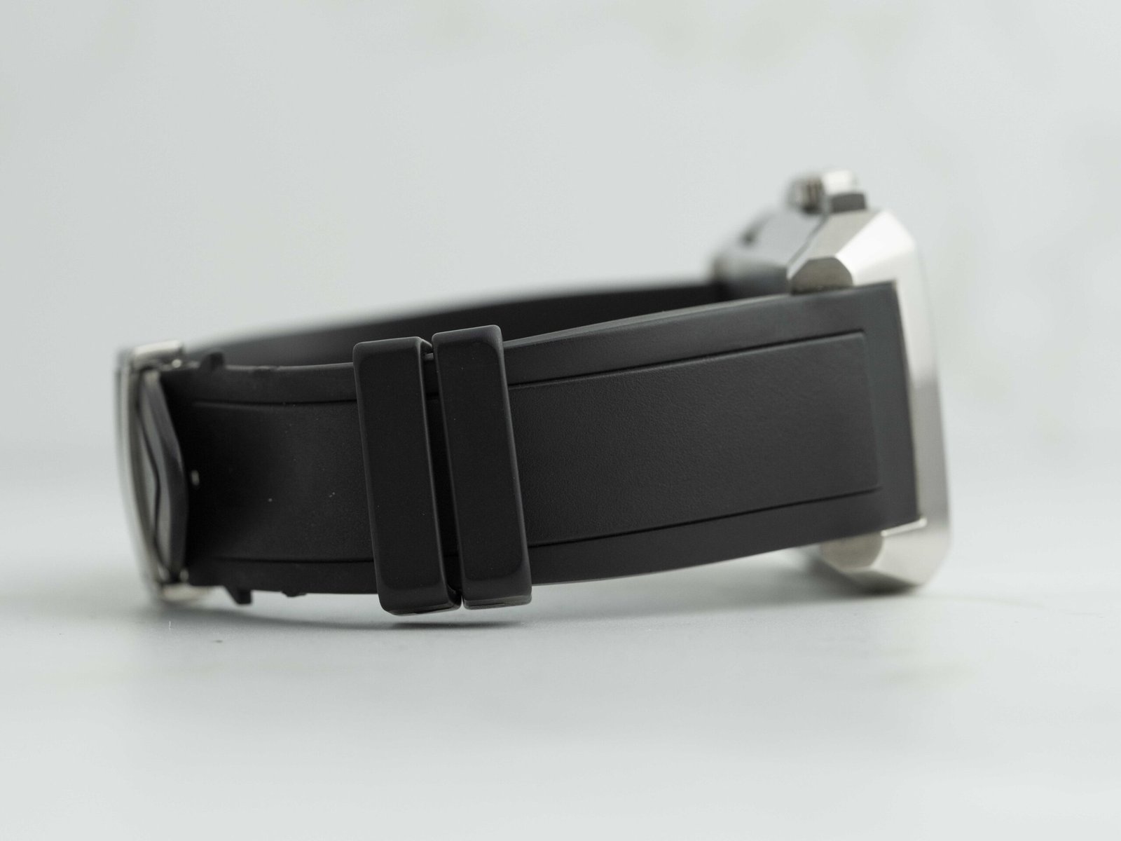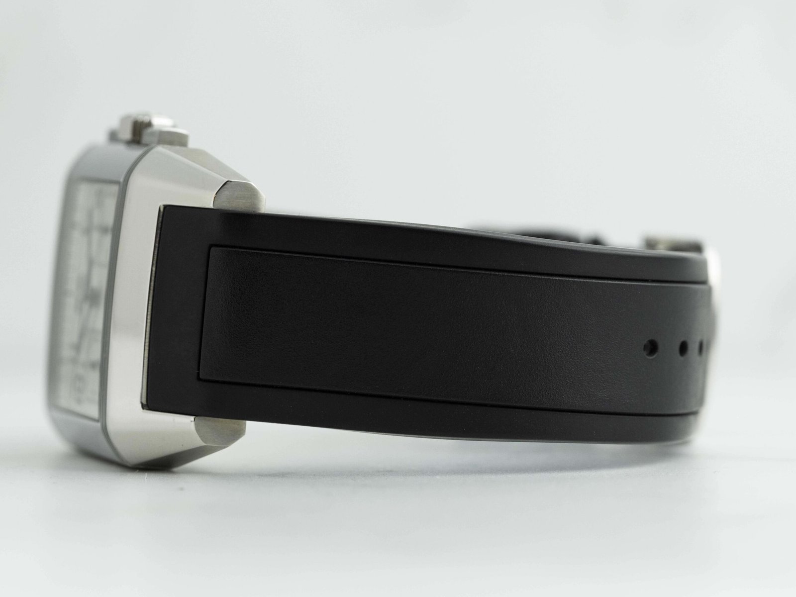 - This reference combines the larger proportions of the Squadra Reverso with a sporty black rubber strap