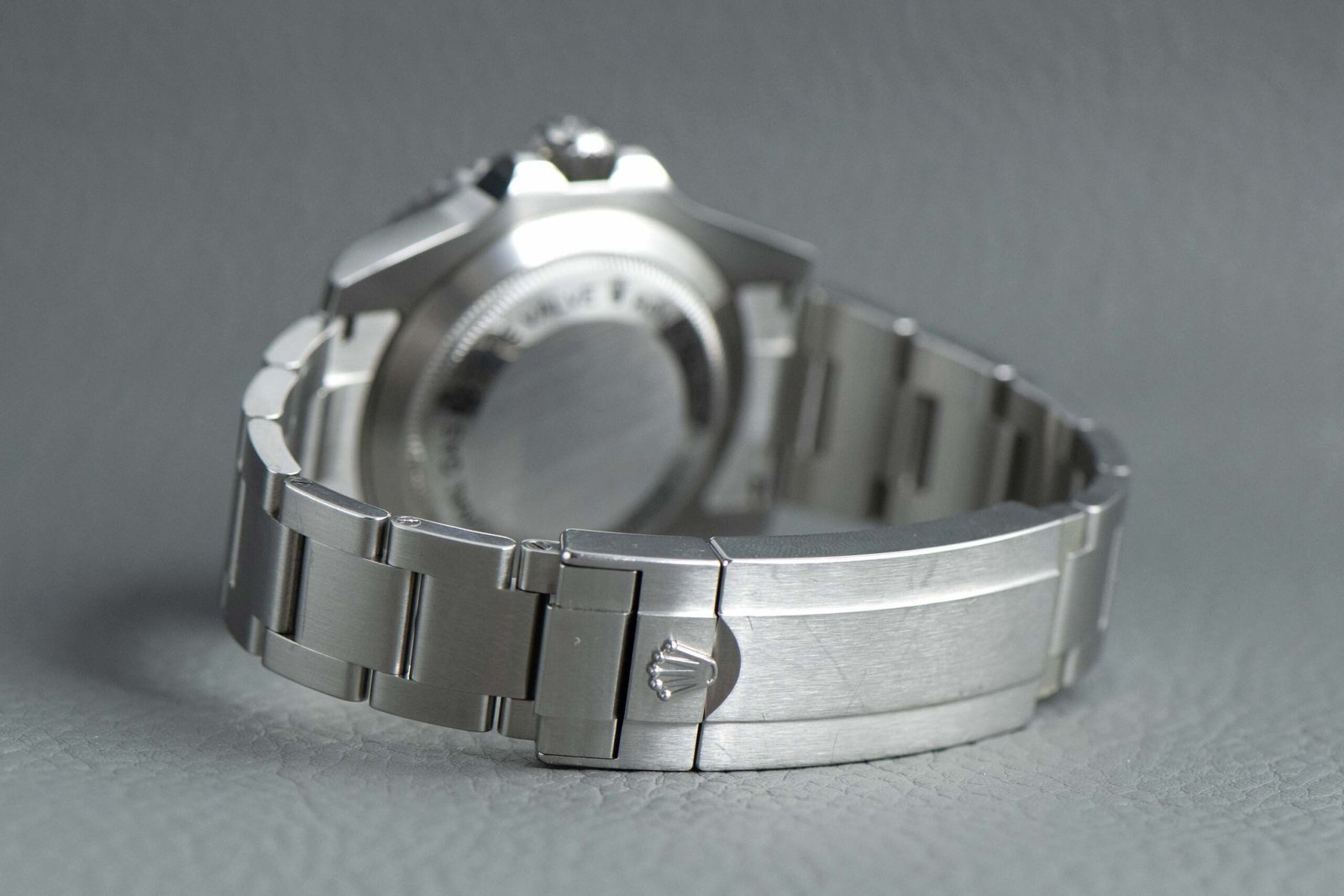 • Securing the Sea-Dweller to the wrist is an Oyster bracelet housing the practical micro-adjustable Glidelock extension system