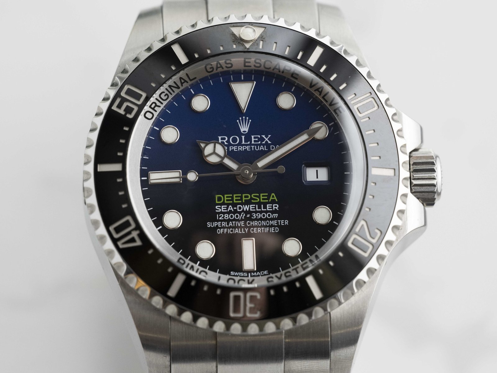 - Setting the D-Blue apart from the standard Deepsea is its distinctive blue-to-black gradient dial and ‘DEEPSEA’ script in bright green reflecting the colour of Cameron’s submarine
