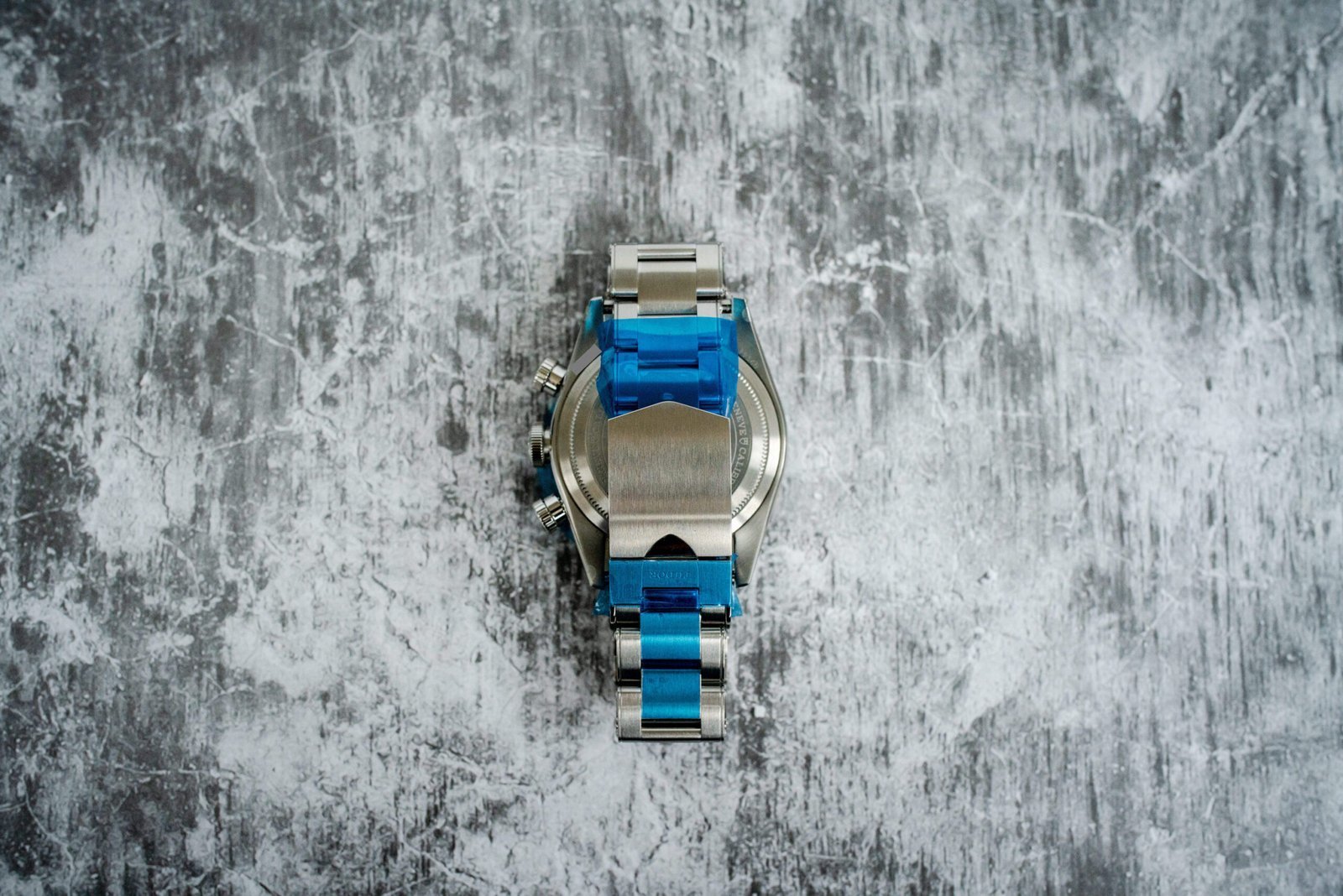 - A screw-down crown and pushers allow for 200m of waterproofness and highlight the Black Bay Chronograph’s versatility