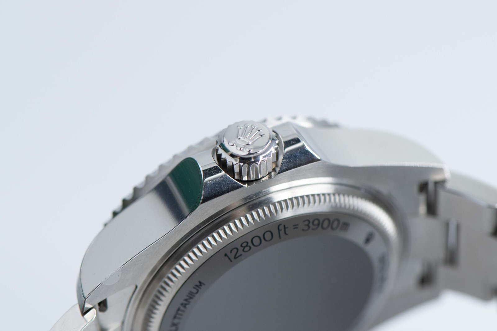 • More than tripling the depth capabilities of the standard Sea-Dweller, its waterproofness is rated at an impressive 12,800 feet / 3,900 metres