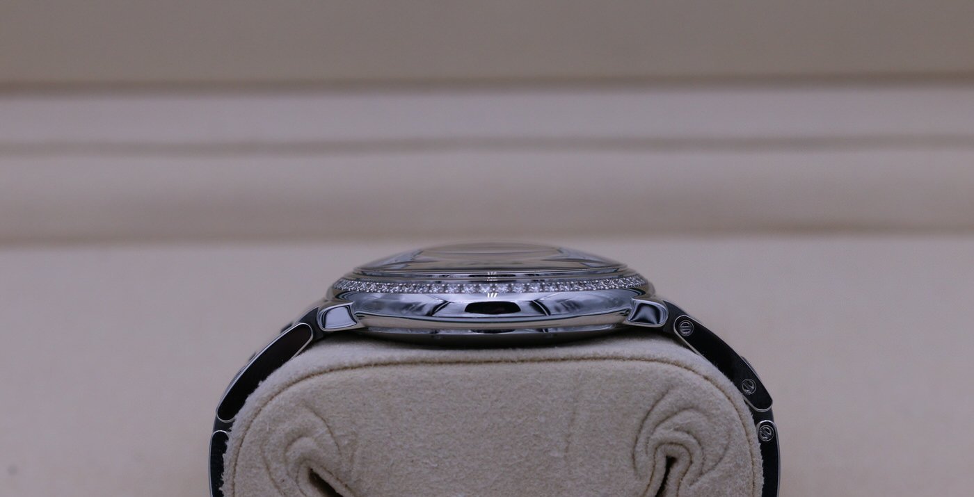 This Cartier Santos is in very good condition. It is the automatic 36mm version with factory diamond bezel. It is complete with box and papers and was originally sold in December of 2018.