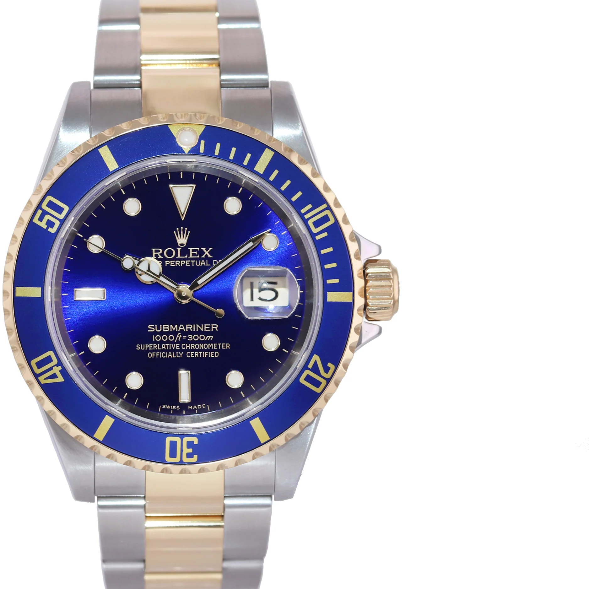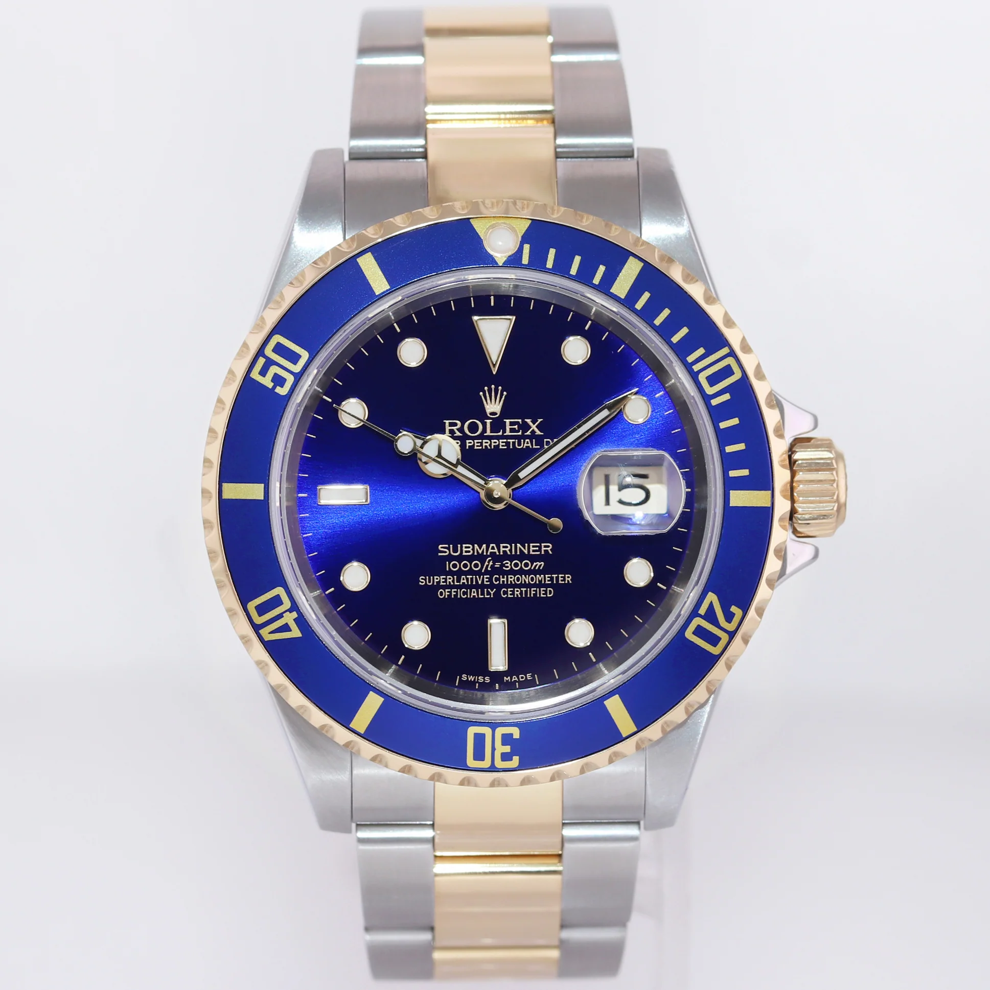 MINT 2004 Rolex Submariner 16613 Steel Two Tone Gold Buckle Sunburst Blue Watch