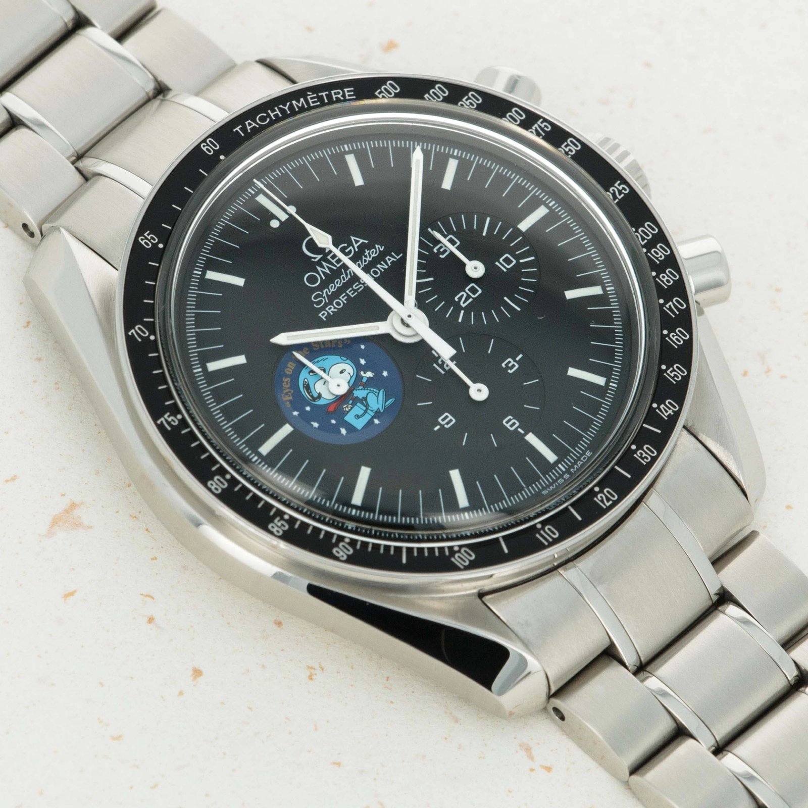 Following Omega’s crucial role in the safe return of the Apollo 13 crew, who relied on their Speedmasters to time their re-entry into Earth’s orbit, NASA awarded Omega with the prestigious Snoopy Award on October 5, 1970. This recognition was for Omega’s exceptional contribution to the success of what could have been a tragic mission. To celebrate this honor, Omega released the Blue Snoopy Speedmaster ref. 3578.51.00 in 2003.