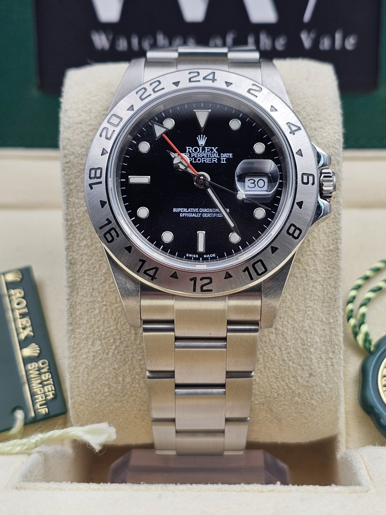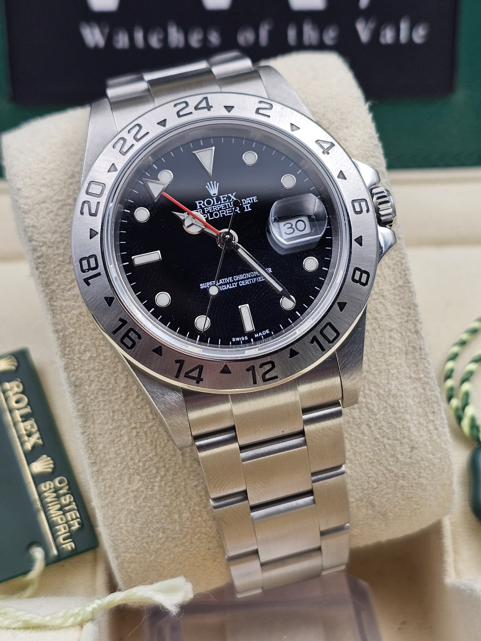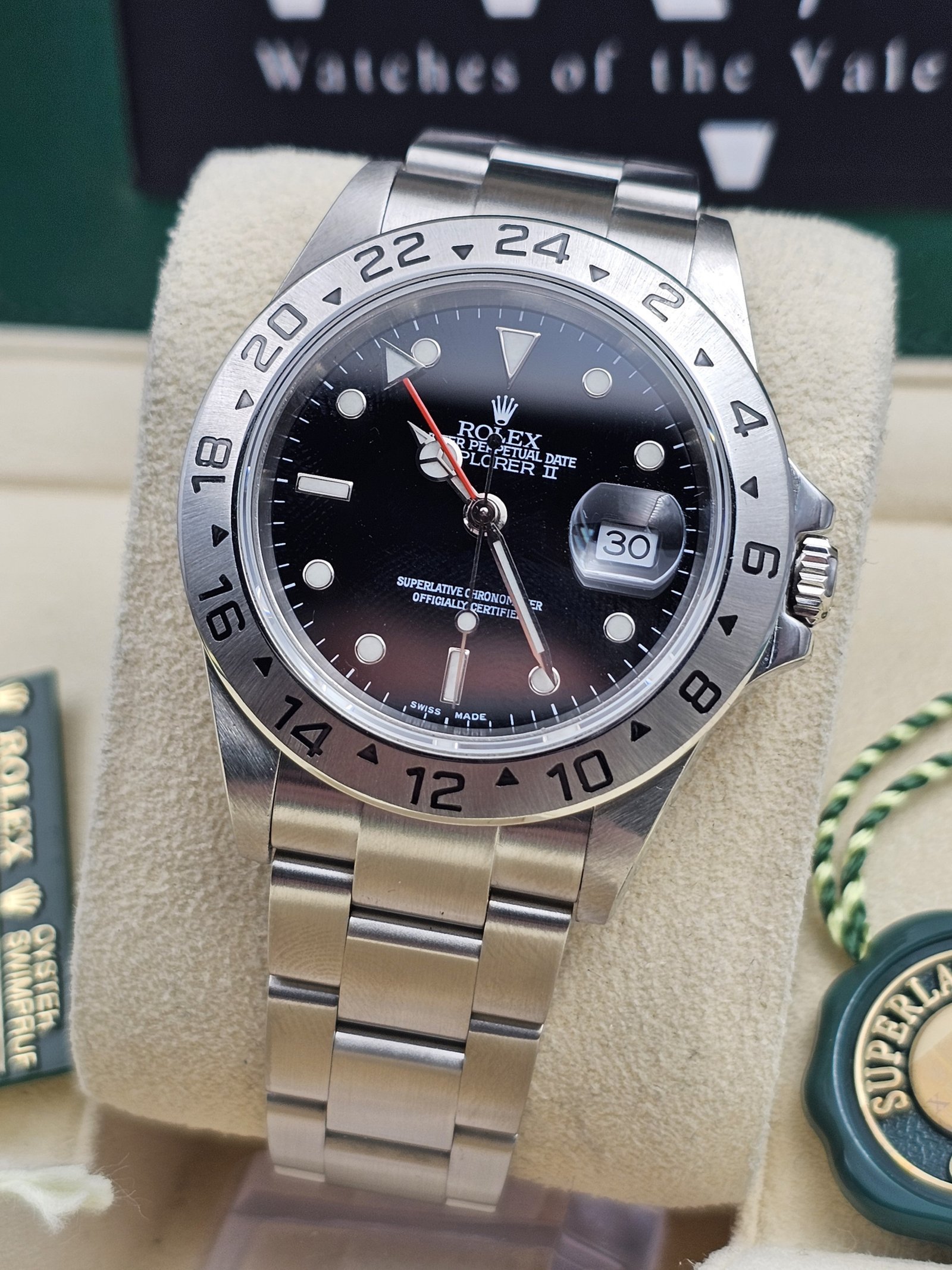 The Rolex Explorer II 2005 (Reference 16750) is a timeless classic embodying rugged elegance. With a 40mm case size, this automatic timepiece boasts impeccable condition, accompanied by its original box and papers. A symbol of adventure and precision, it’s ready to accompany its wearer on any journey.