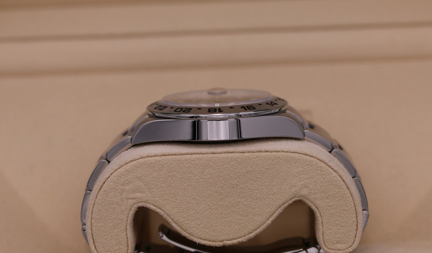 The bezel is in very good condition with some light marks and hairlines. It is crisp with all black present.