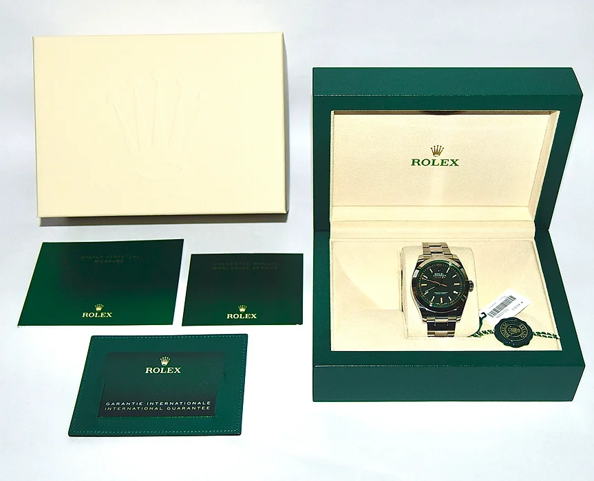 Rolex Milgauss 116400GV Box & Papers 2021 Full Set Green Glass Black Dial