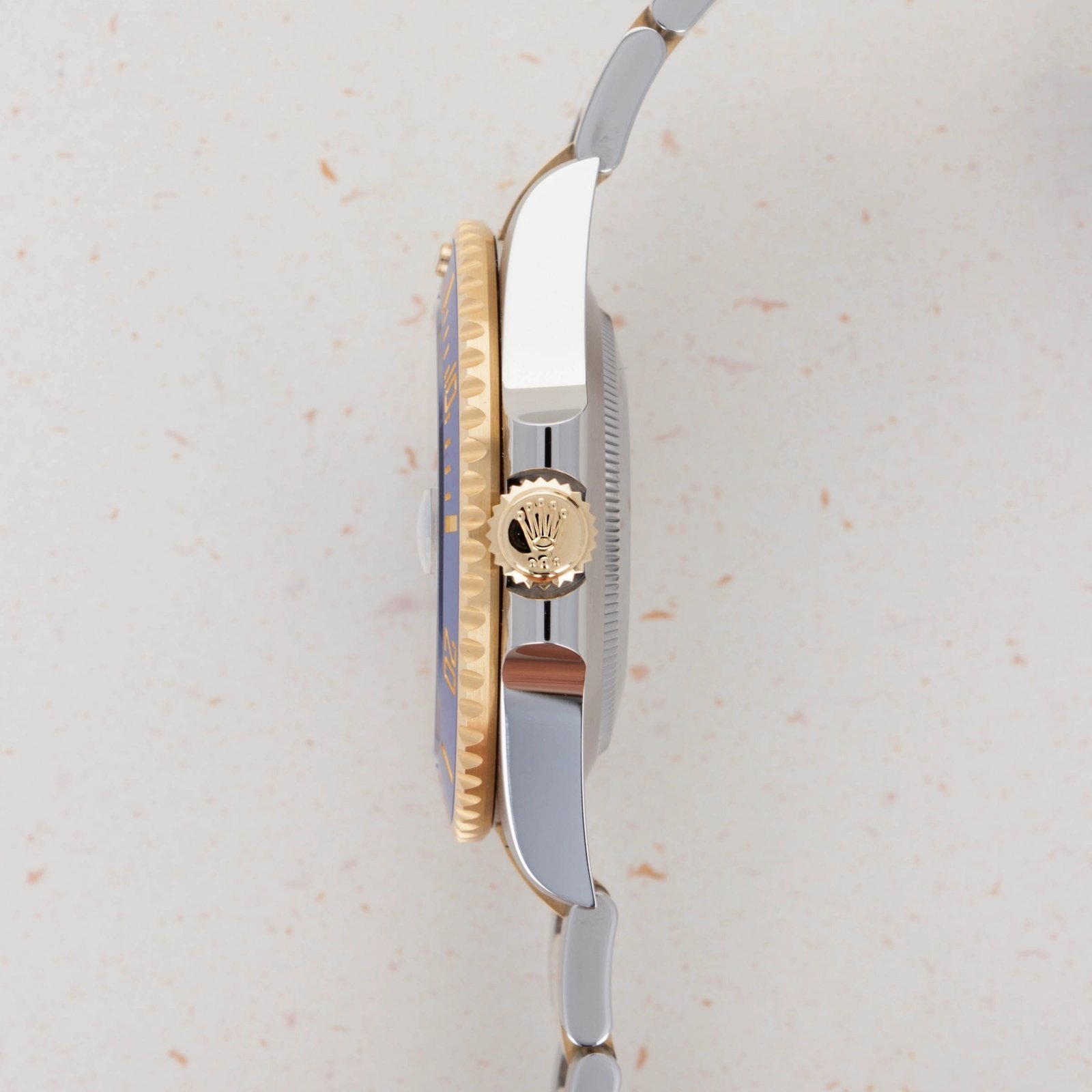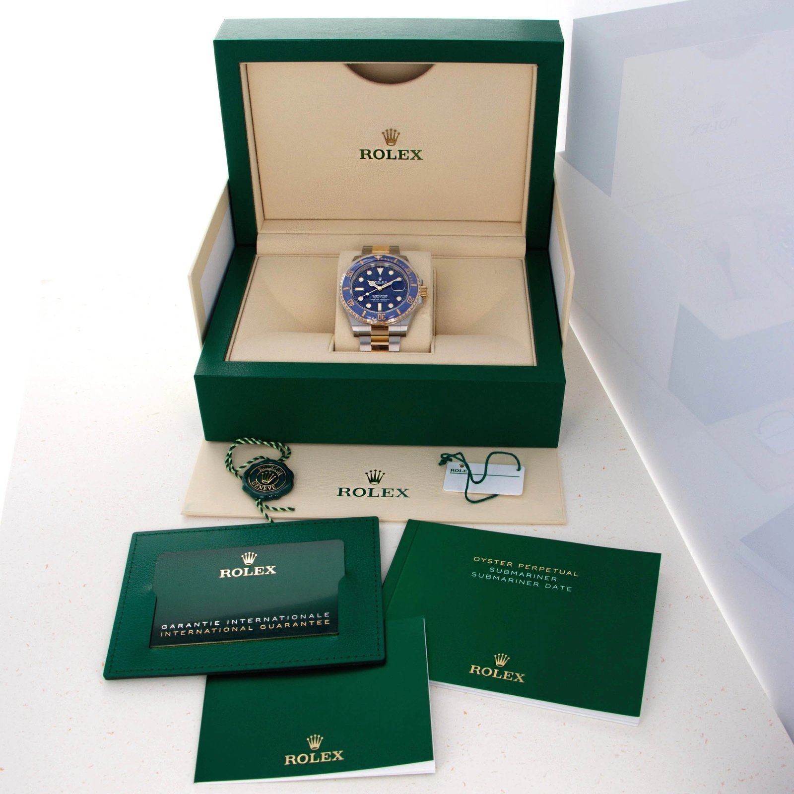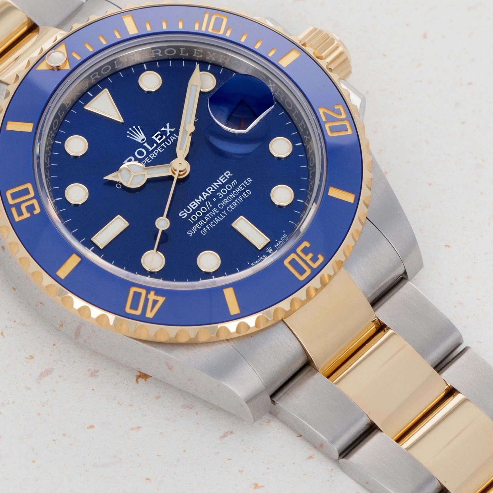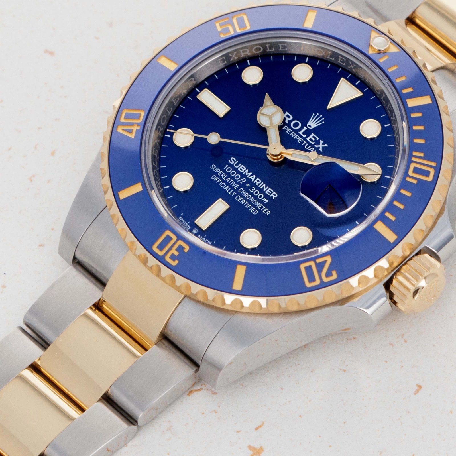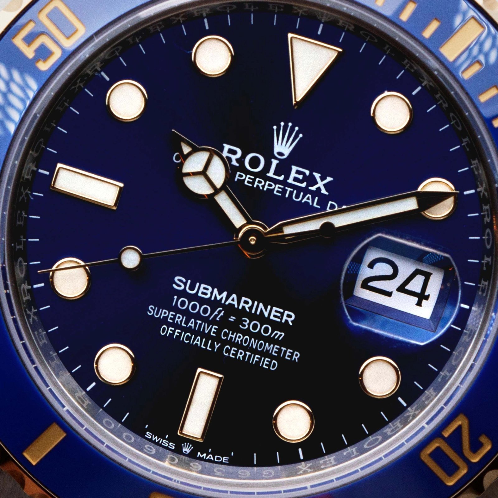 Featuring its signature, and easily recognizable, sunburst blue dial and matching blue bezel, the two-tone Submariner has affectionately earned the nickname “Bluesy” from Rolex collectors and the watch community as a whole.