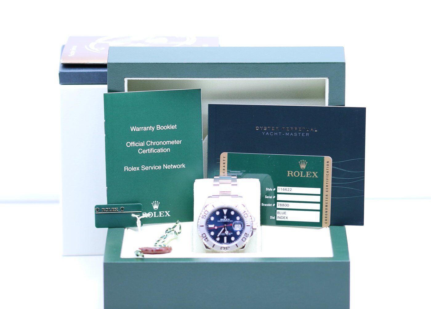 This Rolex Yacht-Master 40 is unpolished and in excellent condition – it is lightly worn with many of the stickers intact. It is complete with the boxes and papers and was originally sold in March of 2013. The case is in excellent condition with the stickers still present. The bracelet is in excellent condition with most of the stickers still present. There are a few tiny hairlines. The bezel is in excellent condition. The watch is functioning as it should and keeping great time; within COSC.