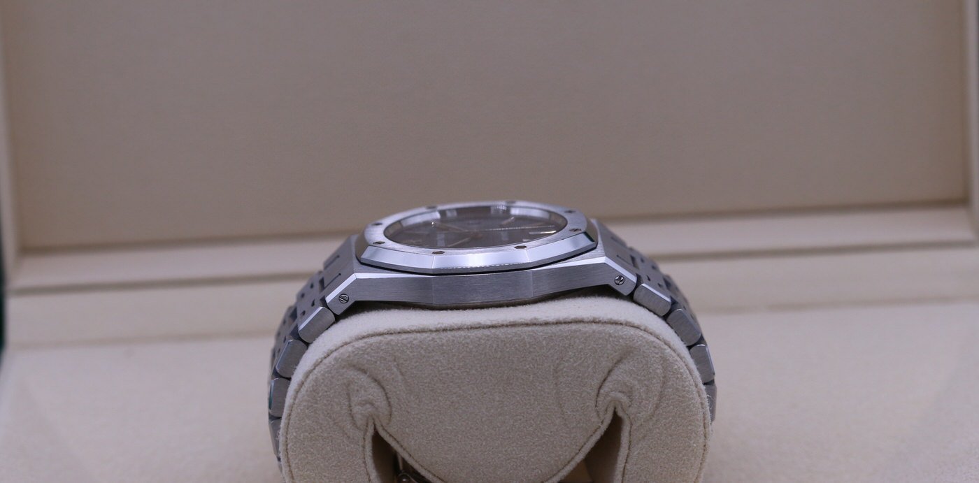 This Audemars Piguet Royal Oak is in very good condition. It is the very desirable 39mm with blue dial. It is comes with the boxes, extracts from the Archives – the original papers were misplaced. It is a G serial. It was serviced by AP in 2019.