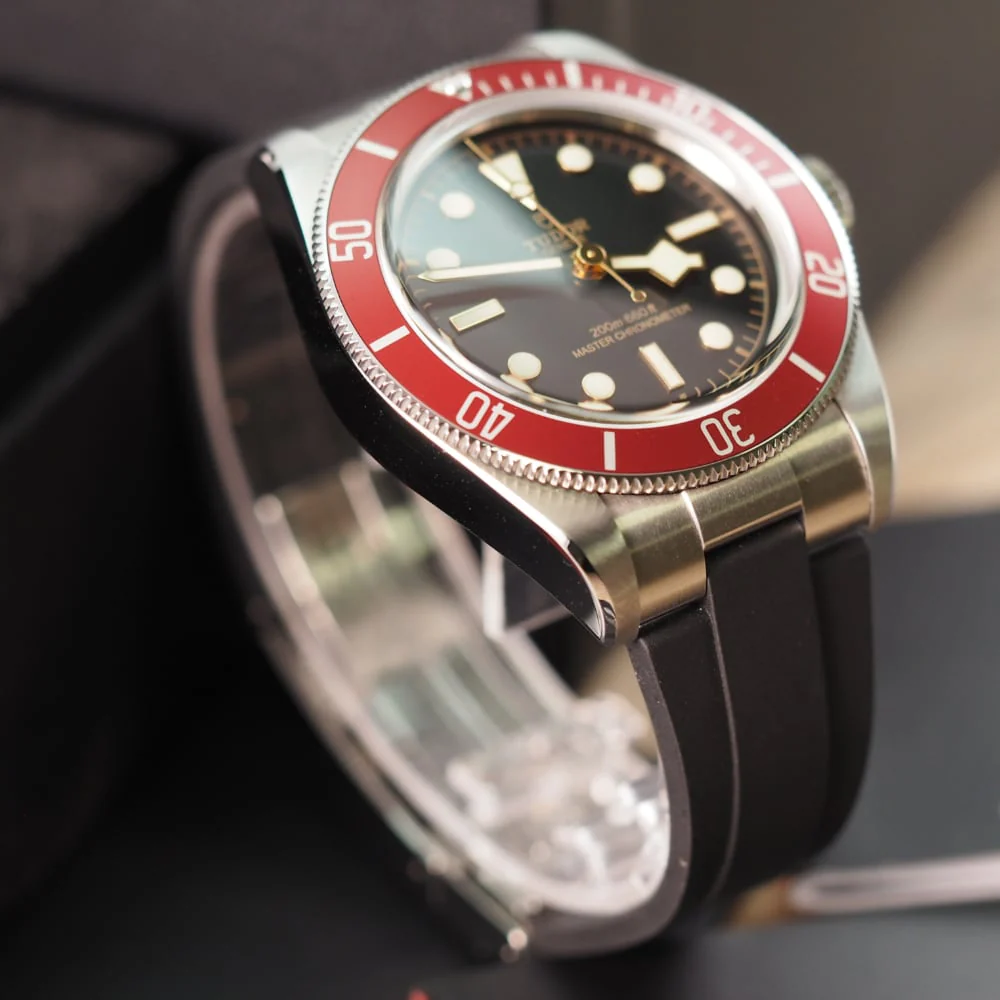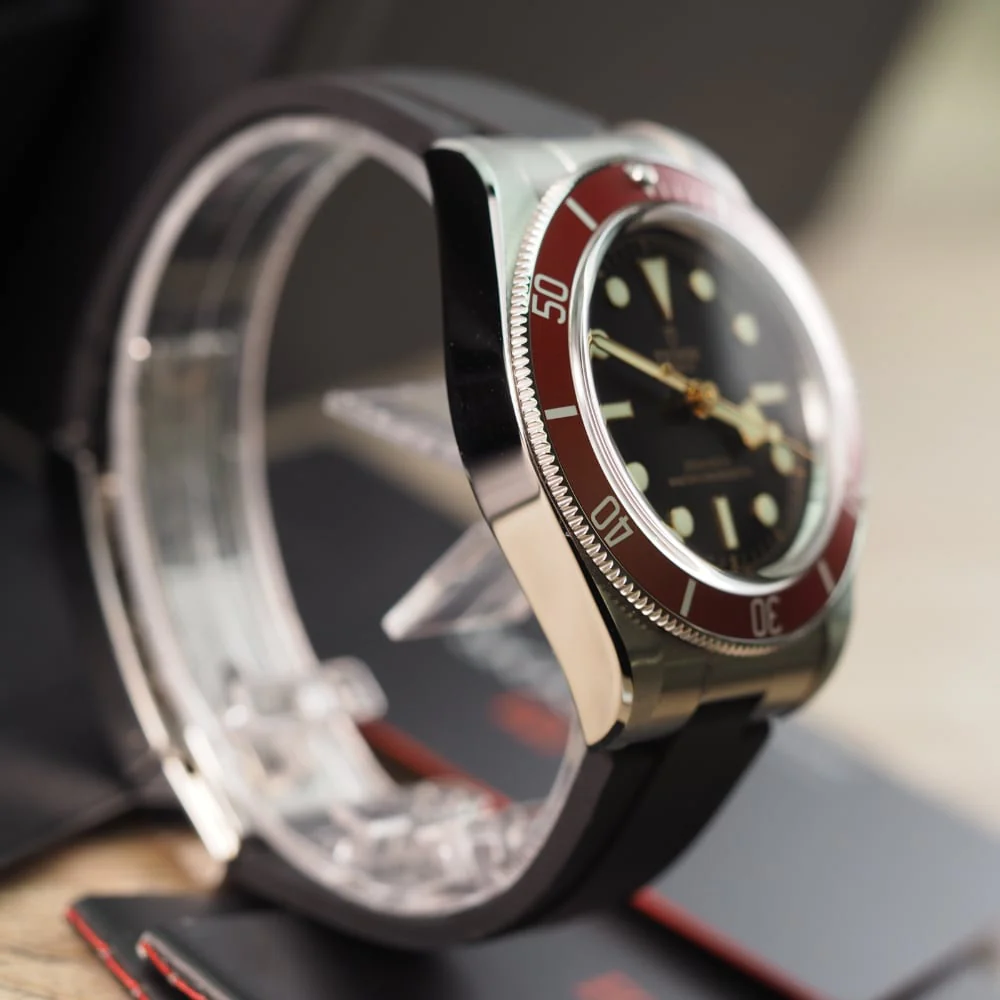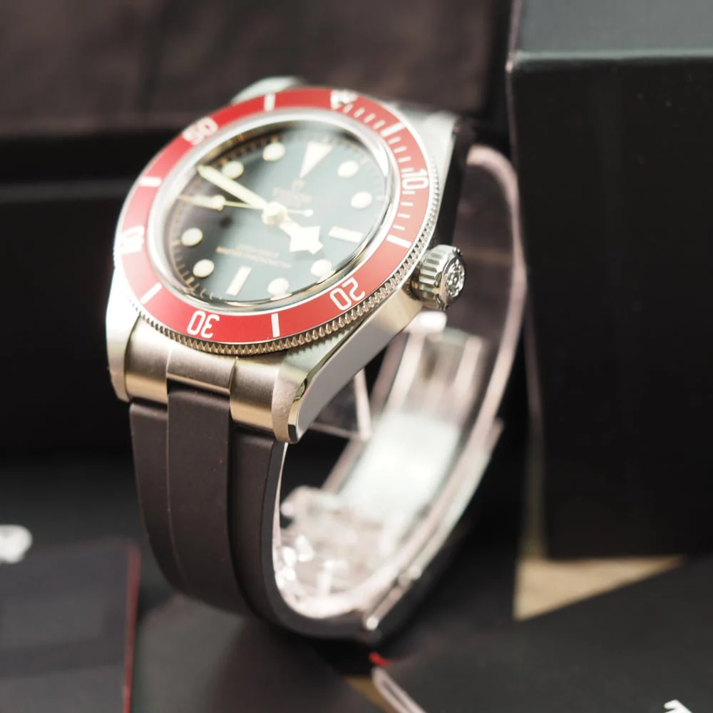 Welcome to the sale of ourTudor Black Bay M7941A1A0RU-0002. This watch was originally purchased in December 2023 and remains in perfect condition. The Tudor Black Bay M7941A1A0RU-0002 features a 41mm stainless steel case, black dial, red uni-directional bezel and is fitted with a Tudor black rubber strap with T-Fit clasp. The watch is powered by the Tudor calibre MT5602-U automatic movement with 70 hour power reserve. Complete with inner and outer boxes, warranty card, manuals and hang tag.