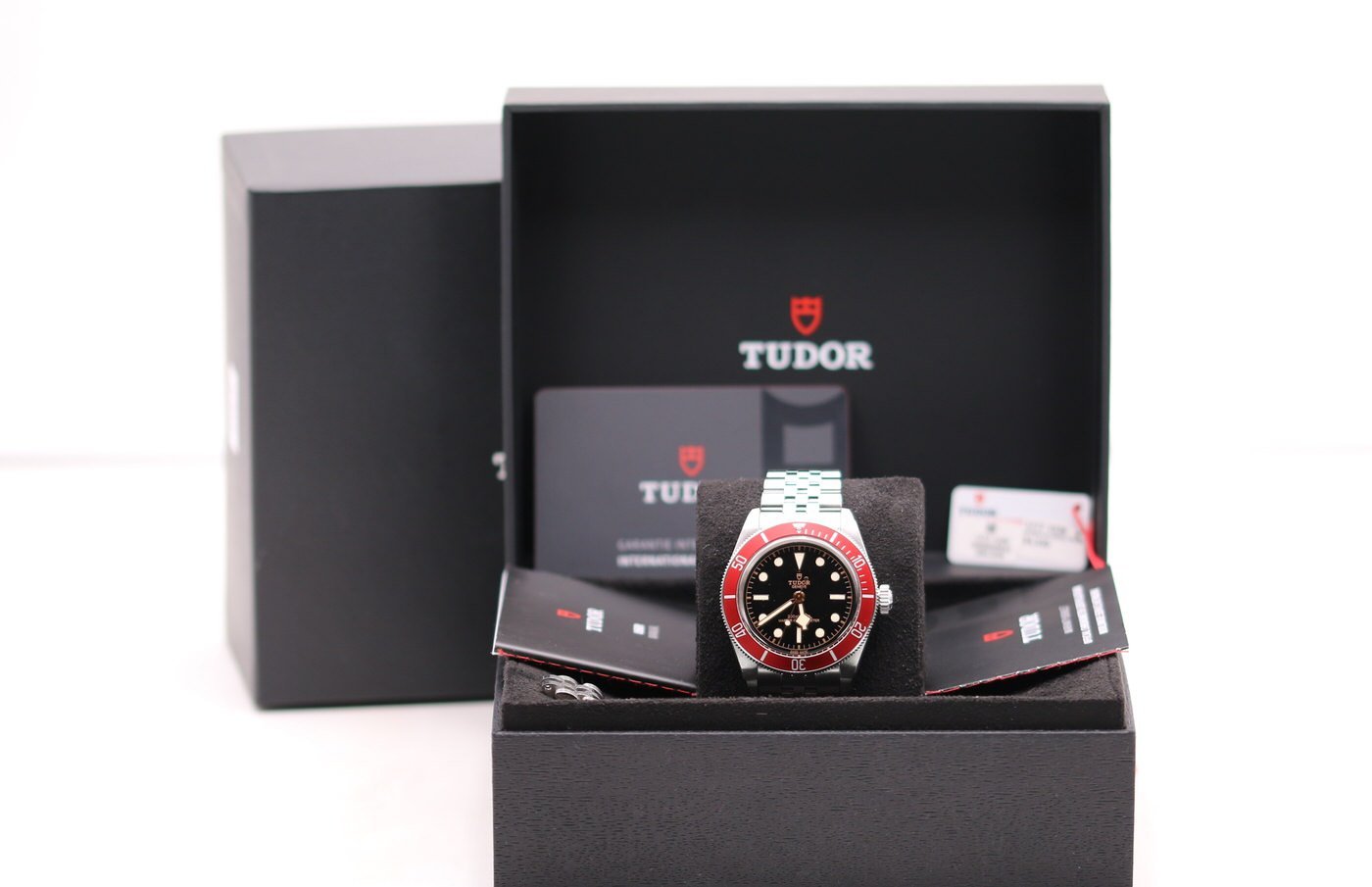 This Tudor Black Bay Heritage is in very good condition This is the newly released, 41mm, Black Bay Heritage featuring a red bezel. It comes with the boxes, booklets, warranty card, hang tag and was just sold in August of 2024.