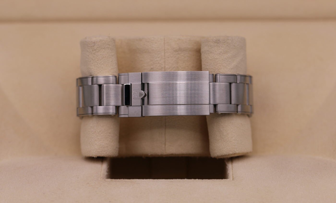 The bracelet is in excellent condition with a few small hairlines and marks. It has all the links and will fit around a 7.75″ wrist.