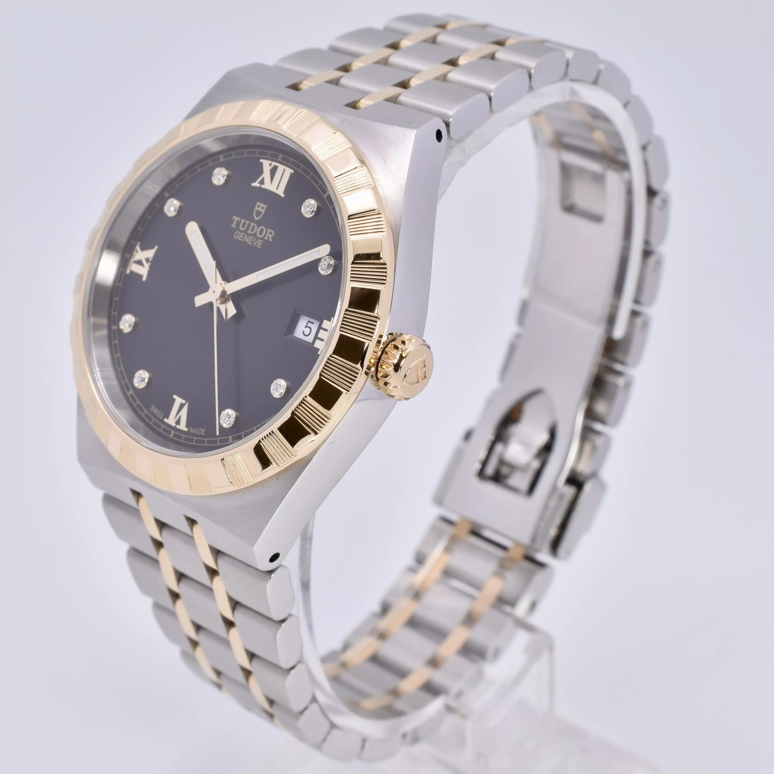 For Sale is a mint example of the Tudor Royale Date 28503-0004. In a 38mm case with an 18ct yellow gold fluted bezel, matching gold crown and bi-colour jubilee style bracelet, this model has a classy and elegant design.
