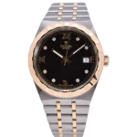 This example features a black diamond dial with roman numerals at the 12, 3, 6 and 9pm. It has an RRP of £3,710.